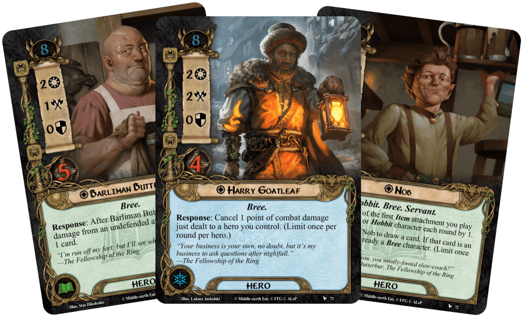 “Static” cards: Cards that stay on the table and aren’t constantly shuffled – e.g., large character, location, scenario, or objective cards.
