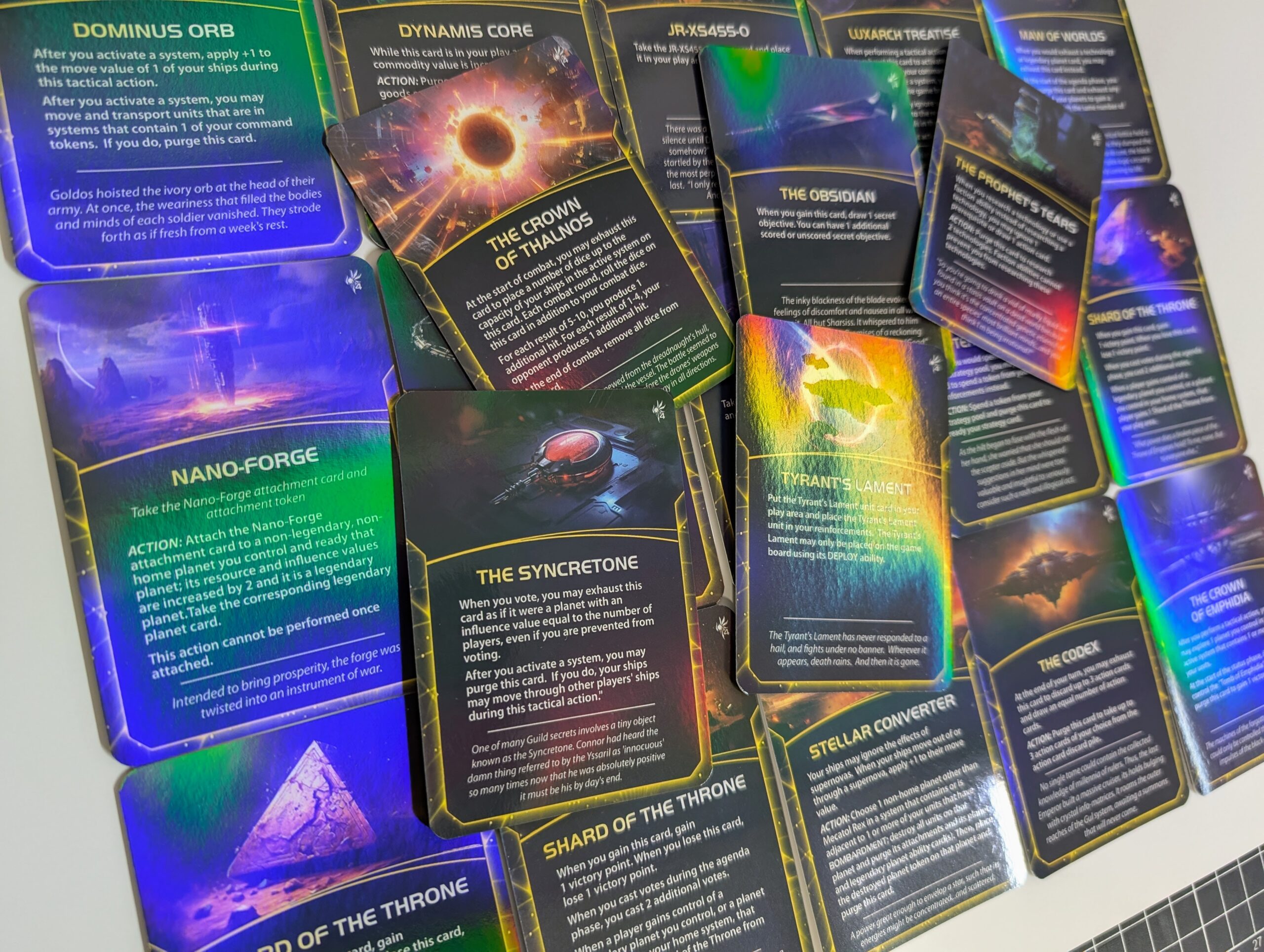 „Static” cards: Cards that stay on the table and aren’t constantly shuffled – e.g., large character, location, scenario, or objective cards.